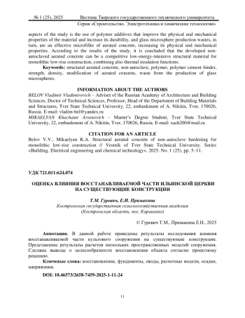 В данной работе приведены результаты исследования влияния восстанавливаемой части культового сооружения на существующие конструкции. Представлены результаты расчетов нескольких пространственных моделей сооружения. Cделаны выводы о целесообразности восстановления объекта согласно проектному решению.