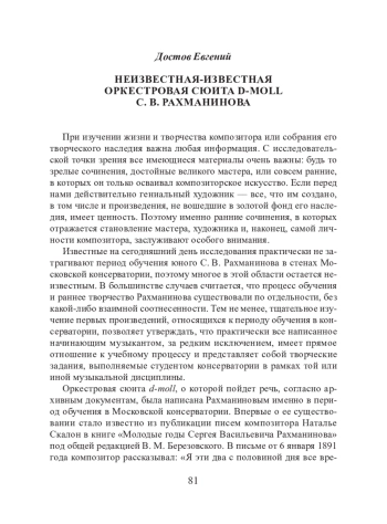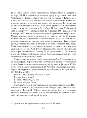 2. Антипов В. И. Обнаружена считавшаяся утраченной Сюита ре-минор Сергея Рахманинова // Российская музыкальная газета: Музейный листок. 2002. № 27–28. Январь. С. 4–5.