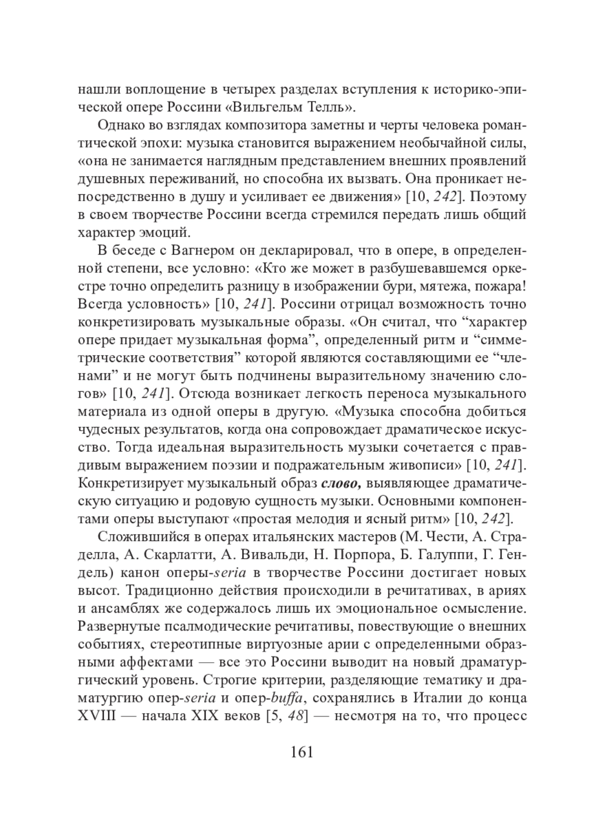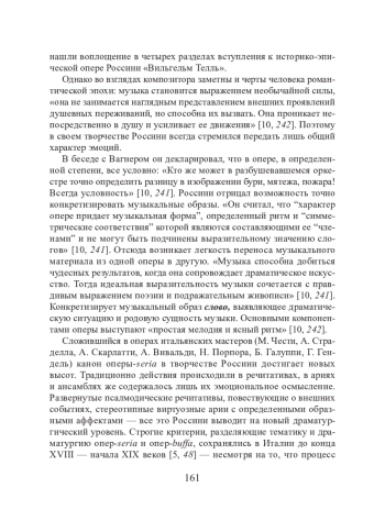 Несмотря на поистине всемирное признание оперного искусства Джоаккино Россини, пришедшее еще при его жизни, в отечественном музыкознании до сих пор нет развернутой монографии, которая полноценно представила бы во всей полноте его 38 опер, многочисленные романсы для голоса и фортепиано, хоровое наследие и камерные концертные сочинения. Единственная русскоязычная монография, написанная Е. Бронфин [1] еще в 50-е годы ХХ века, и популярная монография на итальянском языке А. Фраккароли [9] не претендуют на научно-обоснованное исследование. В течение последних 20 лет появились всего две монографические диссертации, связанные с изучением оперных жанров и отдельных сочинений композитора: О. С. Михайловой в РГК имени Рахманинова [6] и Л. А. Садыковой [8] в Казанской консерватории. В числе прочих работ необходимо выделить книгу А. А. Хохловкиной [10], в которой есть раздел, посвященный интересующим нас сочинениям Россини. В трудах М. Р. Черкашиной рассмотрены произведения исторической тематики [11]. Чтобы выявить эстетические взгляды и воссоздать подлинный образ композитора, были изучены его письма и воспоминания [7].