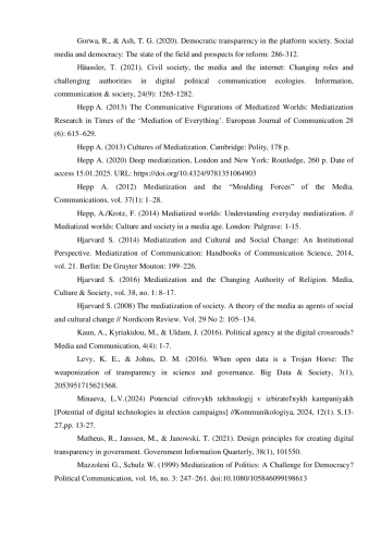 1. Гавра Д. П. Медиатизация 2.0 в процессах политической мобилизации в цифровом социуме // Медиа в современном мире. 60-е Петербургские чтения. СПб., 2021. Т. 2. С. 195-196.
