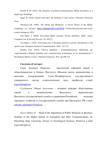 2. Зарубин Д.К. Цифровой популизм и коммуникационные технологии его распространения// Российская школа связей с общественностью. 2024, №33. С.108-124.