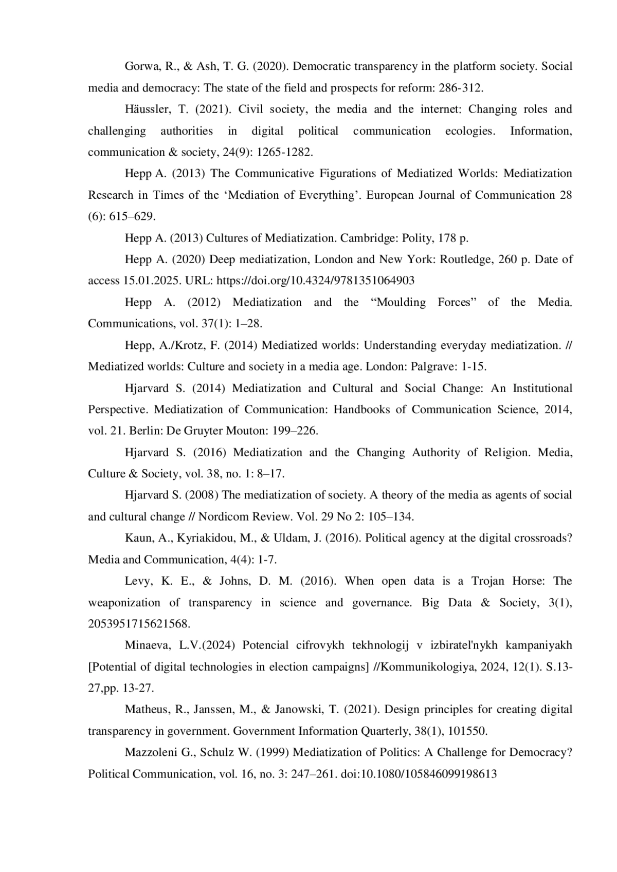 20. Hepp A. Deep mediatization, London and New York: Routledge, 2020, 260 p. DOI: 10.4324/9781351064903