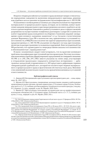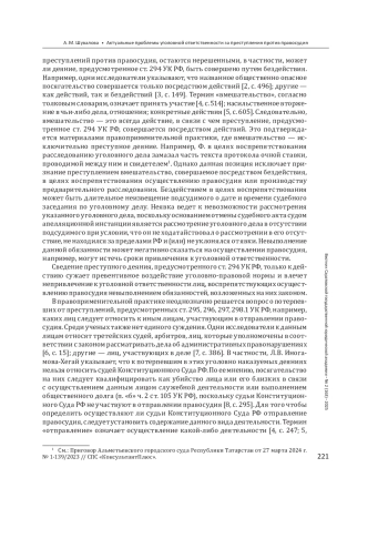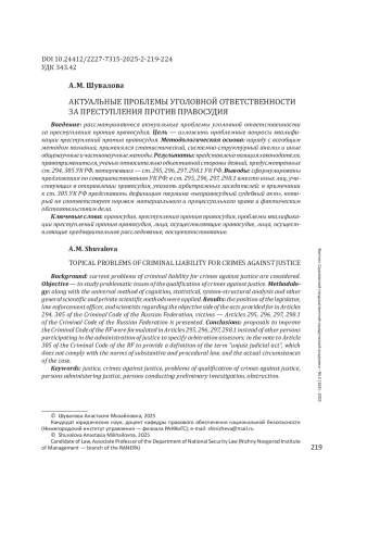 ШУВАЛОВА А. М. АКТУАЛЬНЫЕ ПРОБЛЕМЫ УГОЛОВНОЙ ОТВЕТСТВЕННОСТИ ЗА ПРЕСТУПЛЕНИЯ ПРОТИВ ПРАВОСУДИЯ // ВЕСТНИК САРАТОВСКОЙ ГОСУДАРСТВЕННОЙ ЮРИДИЧЕСКОЙ АКАДЕМИИ. 2025. № 2 (163)