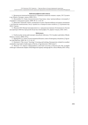 3. Денисова Г. Урожай “горит”, вымерзает и тонет. Чрезвычайные ситуации, связанные с погодными аномалиями, могут привести к банкротствам хозяйств // Агроинвестор. 2024. 3 июня.