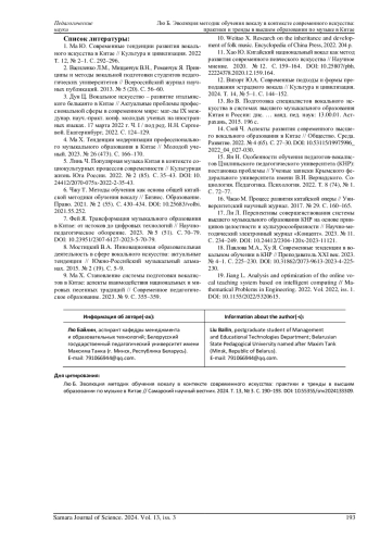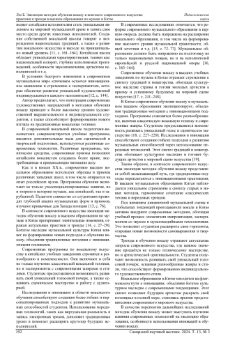 Статья: ЭВОЛЮЦИЯ МЕТОДИК ОБУЧЕНИЯ ВОКАЛУ В КОНТЕКСТЕ СОВРЕМЕННОГО ИСКУССТВА: ПРАКТИКИ И ТРЕНДЫ В ВЫСШЕМ ОБРАЗОВАНИИ ПО МУЗЫКЕ В КИТАЕ (2024)
