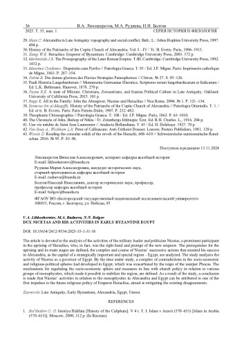 11. Руднева М.А. Александрия в ранневизантийское время: общественные волнения и конфликты // Via in Tempore. История. Политология. 2020. Т. 47. № 3. С. 518-524. EDN: YZNEUC