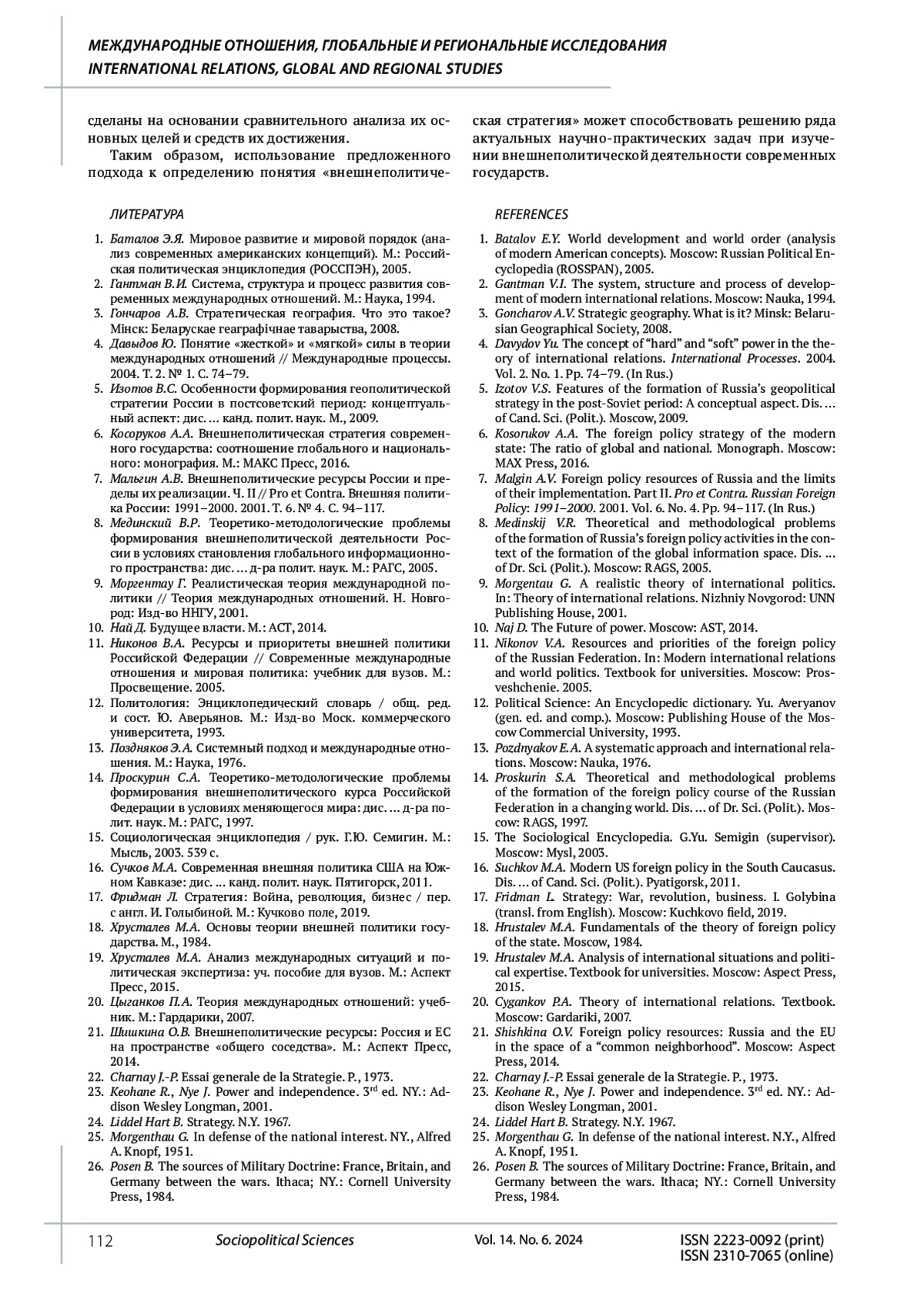 Ключевые фразы: внешняя политика, внешнеполитическая стратегия, ВНЕШНЕПОЛИТИЧЕСКИЙ КУРС, "большая" стратегия, внешнеполитические цели, внешнеполитические ресурсы, международные акторы