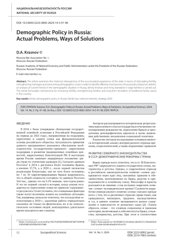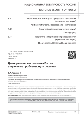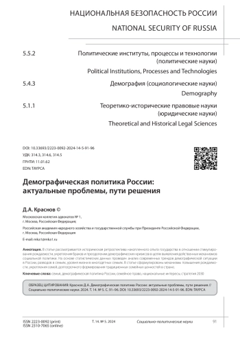 В статье рассматривается историческая ретроспектива накопленного опыта государства в отношении стимулирования рождаемости, укрепления браков и преодолении демографических кризисов в целях выявления действенных механизмов социальной политики. На основе статистических данных проведен анализ современных трендов демографической ситуации в России, разводов в семьях, уровня жизни в многодетных семьях. В статье сформулированы механизмы повышения рождаемости, укрепления семей, долгосрочного формирования традиционных семейных ценностей в стране.
