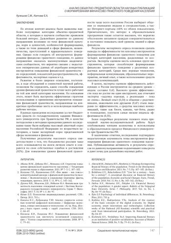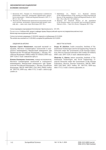 7. Кулижская Ж.С., Токарев А.А. Региональные особенности реализации стратегии повышения финансовой грамотности населения // Global and Regional Research. 2019. Т. 1. № 4. С. 121-127. EDN: QSONNV