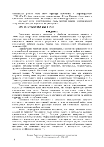 Статья: МЕТАЛЛОГРАФИЧЕСКИЙ АНАЛИЗ КОНСТРУКЦИОННОЙ СТАЛИ ПОСЛЕ ЗАКАЛКИ МНОГОКАНАЛЬНЫМ ЛАЗЕРОМ (2025)