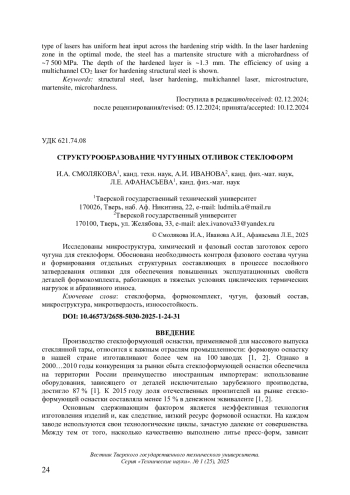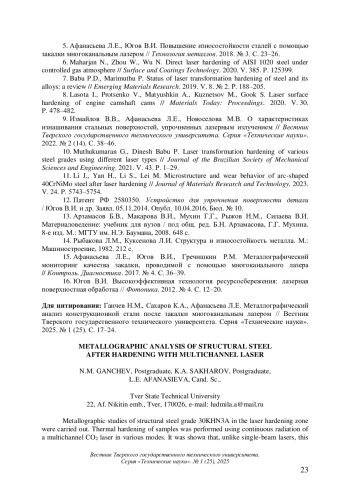 ГАНЧЕВ Н.М., САХАРОВ К. А., АФАНАСЬЕВА Л. Е. МЕТАЛЛОГРАФИЧЕСКИЙ АНАЛИЗ КОНСТРУКЦИОННОЙ СТАЛИ ПОСЛЕ ЗАКАЛКИ МНОГОКАНАЛЬНЫМ ЛАЗЕРОМ // ВЕСТНИК ТВЕРСКОГО ГОСУДАРСТВЕННОГО ТЕХНИЧЕСКОГО УНИВЕРСИТЕТА. СЕРИЯ: ТЕХНИЧЕСКИЕ НАУКИ. 2025. № 1 (25)