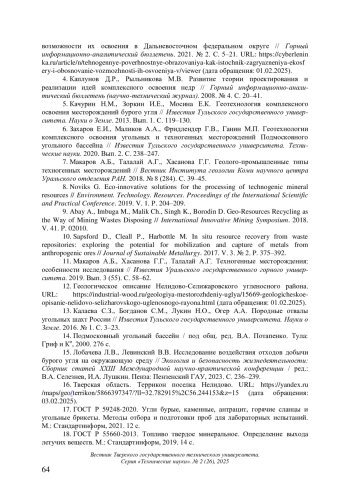 5. Качурин Н.М., Зоркин И.Е., Мосина Е.К. Геотехнология комплексного освоения месторождений бурого угля // Известия Тульского государственного универ-ситета. Науки о Земле. 2013. Вып. 1. С. 119-130.