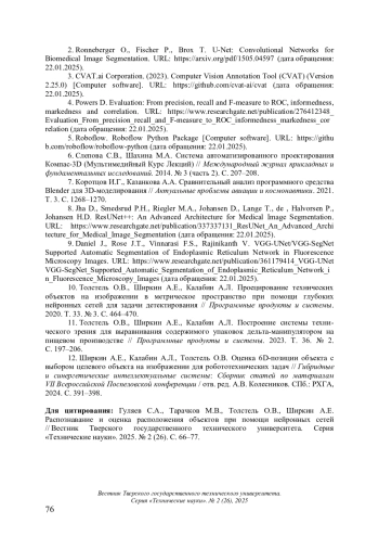 2. Ronneberger O., Fischer P., Brox T. U-Net: Convolutional Networks for Biomedical Image Segmentation. URL: https://arxiv.org/pdf/1505.04597 (дата обращения: 22.01.2025).