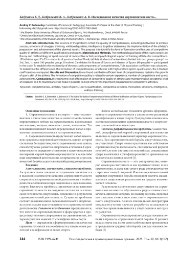 Статья: Исследование качества соревновательности у спортсменов различной квалификации и видов спорта (2025)