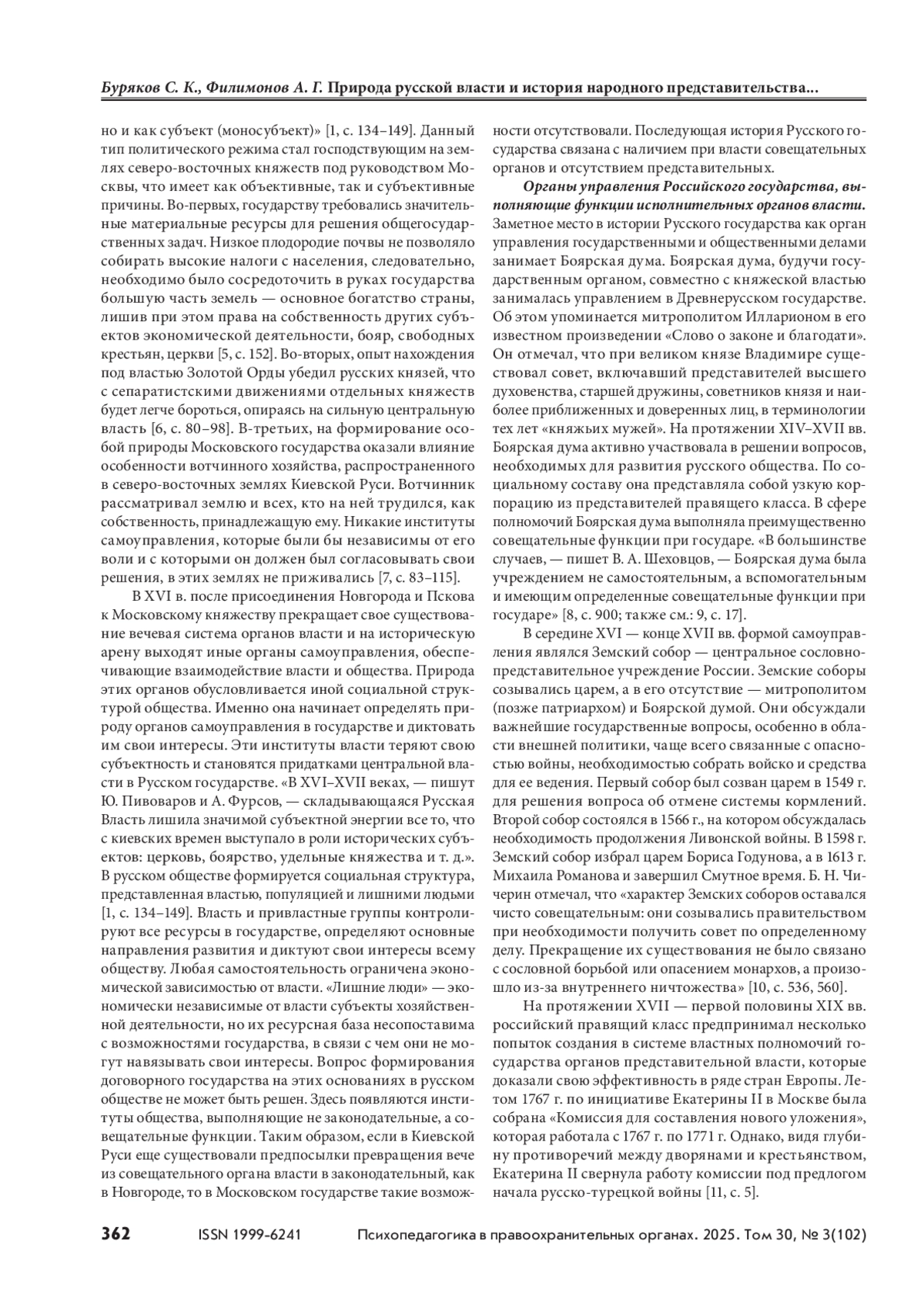 9. Гаврилов А. А. Генезис Боярской думы как высшего органа государственного управления Русского государства в XVI–XVII вв. // Вестник Санкт-Петербургской юридической академии. 2024. № 2(63). С. 13–19.