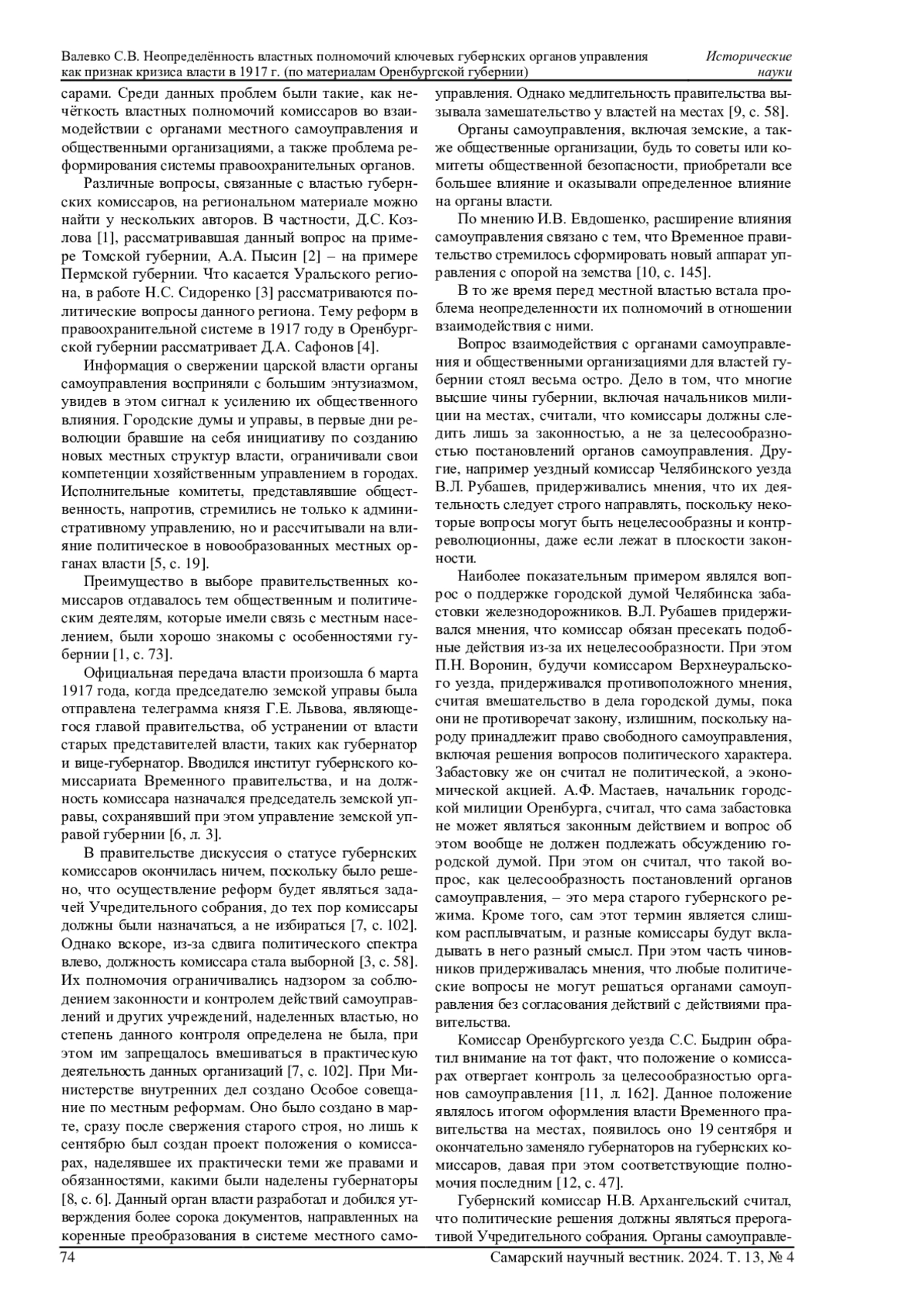 16. Соборнов П.Н. Проблемы организации регионального управления в протоколах совещаний губернских и уездных комиссаров Временного правительства (март-октябрь 1917 г.) // Известия высших учебных заведений. Поволжский регион. Гуманитарные науки. 2024. № 1 (69). С. 33-41. DOI: 10.21685/2072-3024-2024-1-4 EDN: UZIPKO