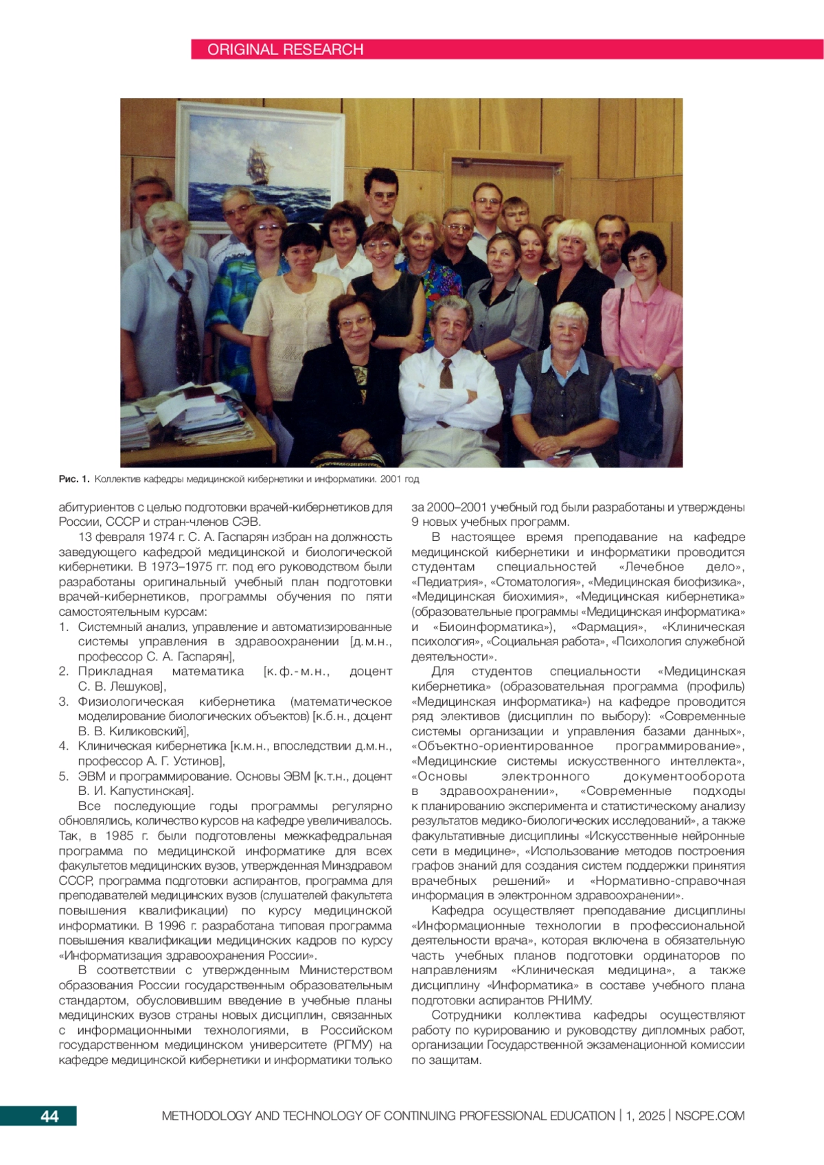 Статья: НАУЧНАЯ ШКОЛА С. А. ГАСПАРЯНА. ИСТОРИЯ КАФЕДРЫ МЕДИЦИНСКОЙ КИБЕРНЕТИКИ И ИНФОРМАТИКИ (2025)