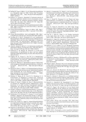 47. Elrggal M. E., Haseeb A., AlGethamy M. et al. Dose optimization of vancomycin in obese patients: a systematic review // Front Pharmacol. 2023. Vol. 14. P. 965284. DOI: 10.3389/fphar.2023.965284