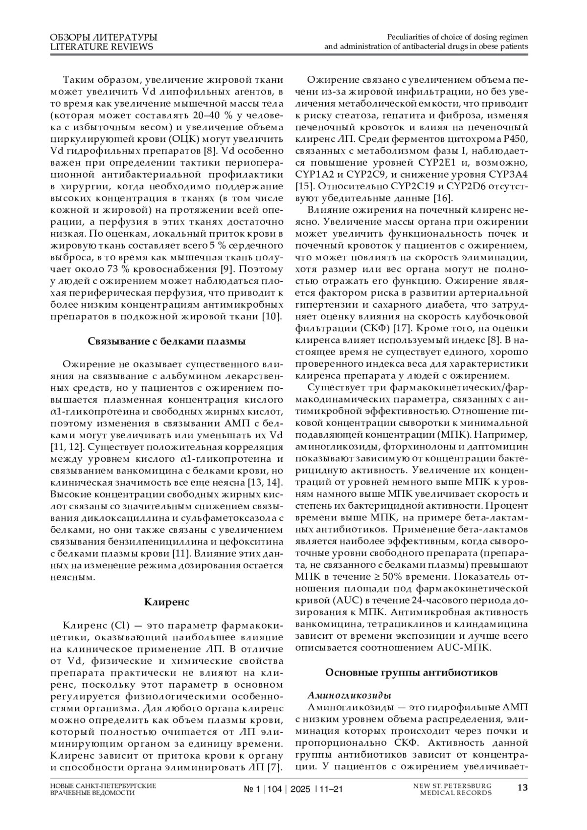 Исследование включает анализ современных научных публикаций, клинических рекомендаций и фармакокинетических данных, касающихся применения антибиотиков у пациентов с ожирением. Особое внимание уделяется изменению объема распределения, клиренсу, и коррекции доз в зависимости от индекса массы тела и других метаболических изменений, связанных с ожирением.