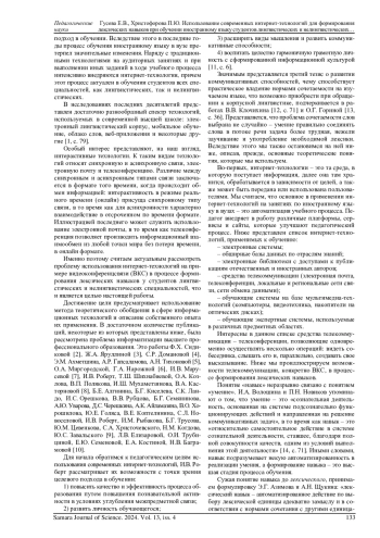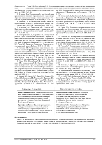 ГУСЕВА Е. В., ХРИСТОФОРОВА П. Ю. ИСПОЛЬЗОВАНИЕ СОВРЕМЕННЫХ ИНТЕРНЕТ-ТЕХНОЛОГИЙ ДЛЯ ФОРМИРОВАНИЯ ЛЕКСИЧЕСКИХ НАВЫКОВ ПРИ ОБУЧЕНИИ ИНОСТРАННОМУ ЯЗЫКУ СТУДЕНТОВ ЛИНГВИСТИЧЕСКИХ И НЕЛИНГВИСТИЧЕСКИХ СПЕЦИАЛЬНОСТЕЙ // САМАРСКИЙ НАУЧНЫЙ ВЕСТНИК. 2024. ТОМ 13, № 4