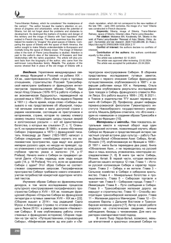 Результаты. Проведенный анализ источника показал, что на смену старого образа Сибири с «плохой» славой, который не соответствовал новым реалиям конца XIX – начала ХХ вв. во французском дискурсе конструировался образ «новой» Сибири.