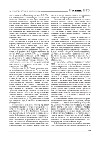Статья посвящена основным аспектам образовательной и научной политики, связанной с именем графа С. С. Уварова, министра народного просвещения в царствование Николая I в 1830-е-1840-е гг. В результате его деятельности была создана целостная система школьного и университетского образования и науки, давшая значительные результаты, начиная со второй половины XIX в. в самых различных сферах науки, техники, литературы, искусства, государственного строительства и др.