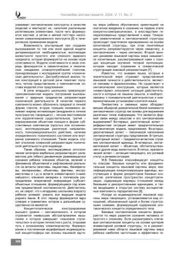 Анализ. В работах отечественных исследователей описаны фрагменты языковой картины мира людей разных профессий, говорящих на разных языках. В данной статье представлена авторская точка зрения на модель фрагмента детской языковой картины мира младшего школьника. В качестве ядра анализа отобраны предикаты психической деятельности, используемые в речи детьми, как одна из многочисленных и ведущих групп глаголов в речи в этом возрасте. Выявлены принципы динамики образа мира, отраженные в языке ребенка. Онтологический принцип – усвоение родного языка происходит через усвоения различных моделей структурных схем предложений и их вариантов. Когнитивный принцип – пропозиция – особая пакетированная структура хранения знаний, имплементированная и фиксируемая структурной схемой предложения. Коммуникативный принцип – речевые акты, выраженные структурной схемой предложения, реализуют интенции носителя языка. Таким образом, структурные схемы предложений являются означающими синтаксических концептов, а интенции и пропозиции их означаемыми. Одним словом синтаксически репрезентируемый концепт управляет содержанием структурной схемы предложения и типом речевого акта, подсвечивая его индивидуальные когнитивные признаки.