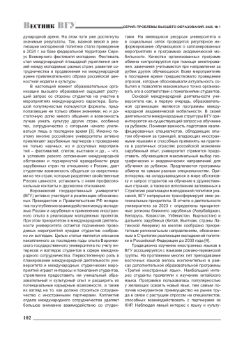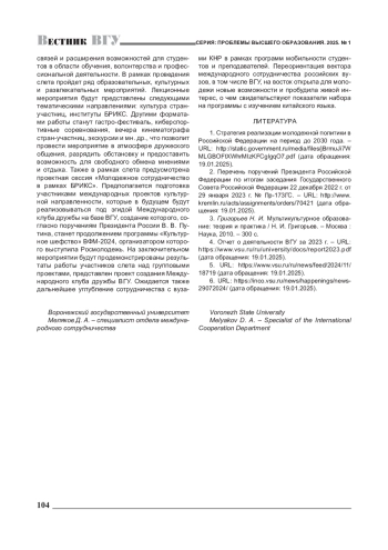 МЕЛЯКОВ Д.А. СТУДЕНТЫ КАК УЧАСТНИКИ МЕЖДУНАРОДНОГО СОТРУДНИЧЕСТВА ВУЗОВ // ВЕСТНИК ВОРОНЕЖСКОГО ГОСУДАРСТВЕННОГО УНИВЕРСИТЕТА. СЕРИЯ: ПРОБЛЕМЫ ВЫСШЕГО ОБРАЗОВАНИЯ. 2025. № 1