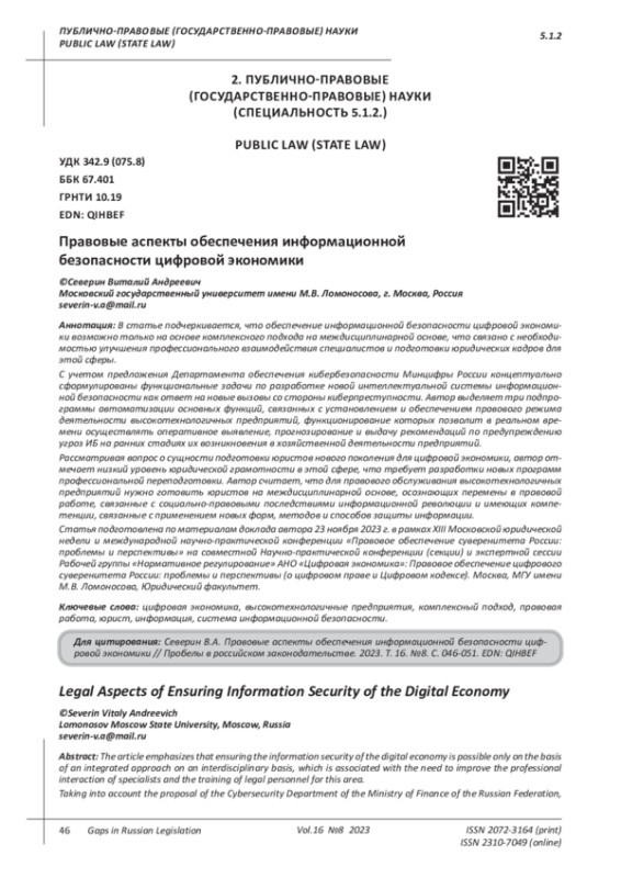 11. Северин В. А. Совершенствование деятельности юристов в цифровой экономике // Проблемы экономики и юридической практики. - 2021. - № 6. EDN: BRFNWO