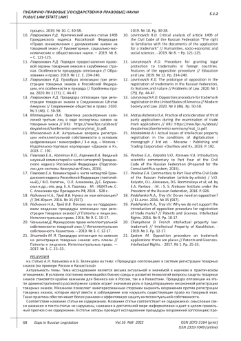 10. Лавринович Р.Д. Критический анализ статьи 1493 Гражданского кодекса Российской Федерации “Право ознакомления с документами заявки на товарный знак” // Гуманитарные, социально-экономические и общественные науки. - 2019. № 8. - С. 121-125. EDN: LZJYPL