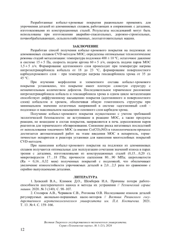 14. Щитов Н.Н., Лозован А.А. Совершенствование технологии нанесения защитных хромовых покрытий осаждением из металлоорганических соединений // Сварочное производство. 2020. № 12. С. 43-51. EDN: KQEEMP