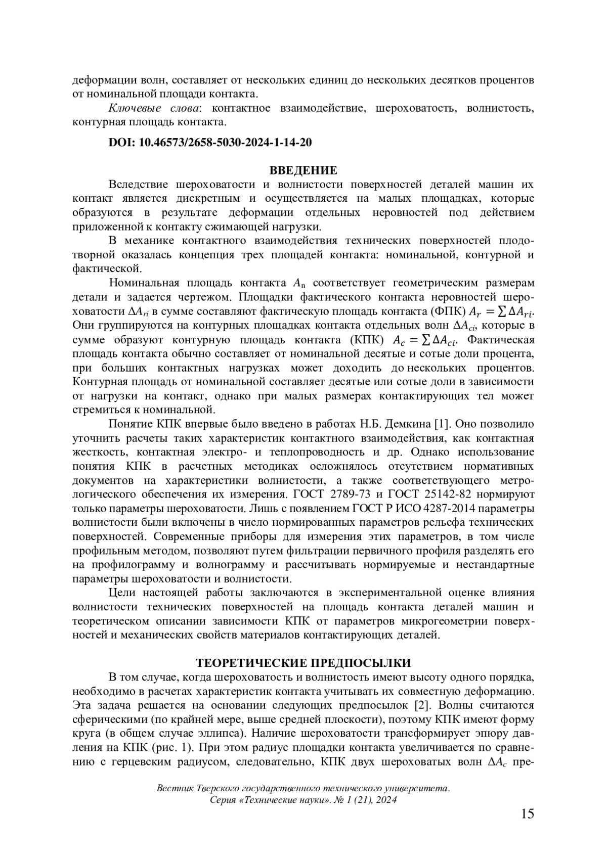 1. 	Демкин Н.Б. Контактирование шероховатых поверхностей. М.: Наука. 1970. 227 с. EDN: YKDVDD