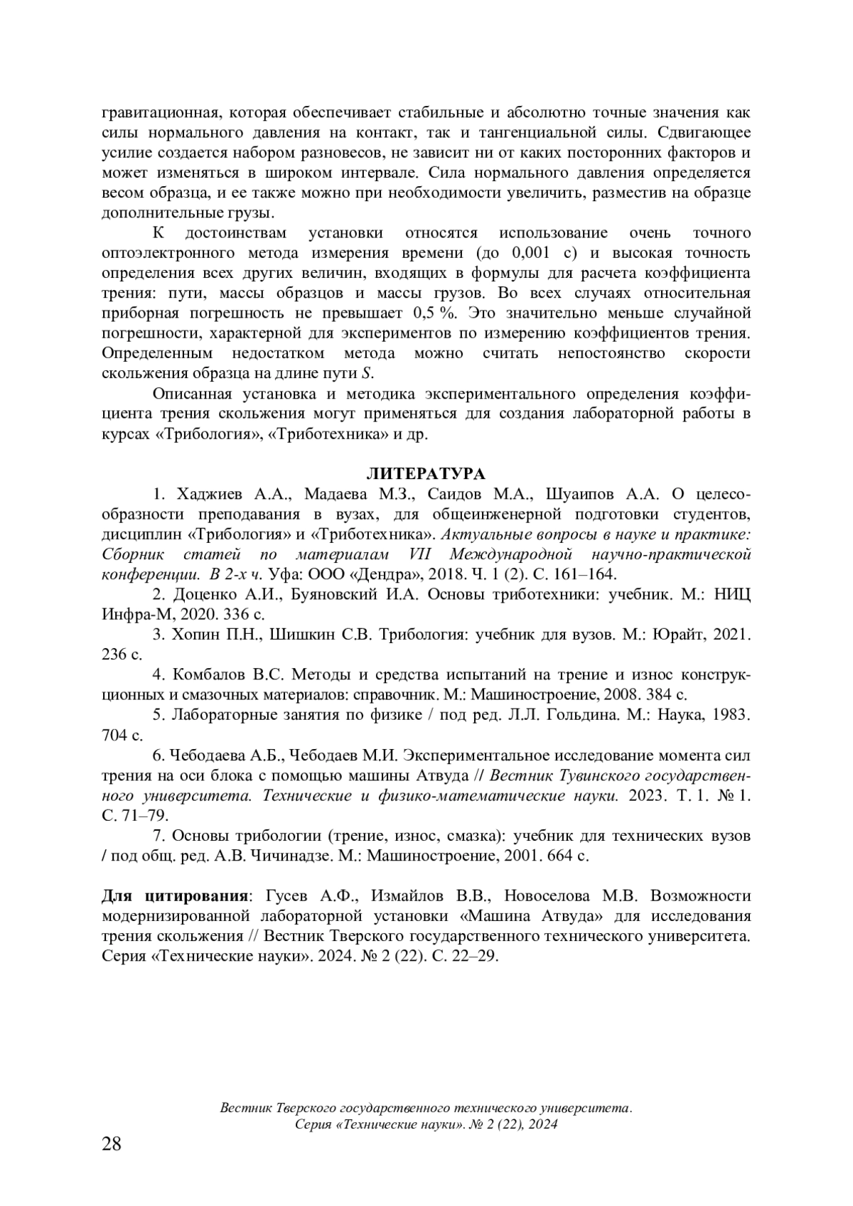 2. 	Доценко А.И., Буяновский И.А. Основы триботехники: учебник. М.: НИЦ Инфра-М, 2020. 336 с.