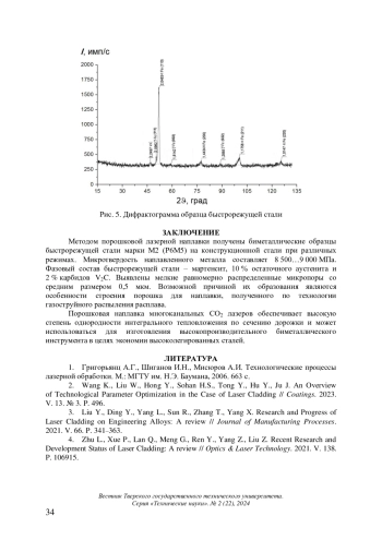 3. Liu Y., Ding Y., Yang L., Sun R., Zhang T., Yang X. Research and Progress of Laser Cladding on Engineering Alloys: A review // Journal of Manufacturing Processes.2021. V. 66. P. 341-363. EDN: LTXJFC