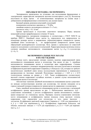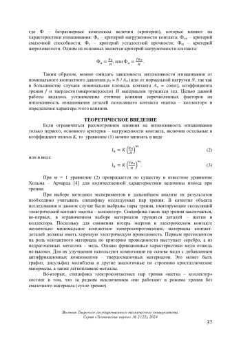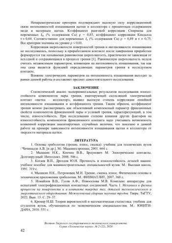 Статья: О НЕКОТОРЫХ КОРРЕЛЯЦИОННЫХ СООТНОШЕНИЯХ, СВЯЗАННЫХ С ИНТЕНСИВНОСТЬЮ ИЗНАШИВАНИЯ (2024)