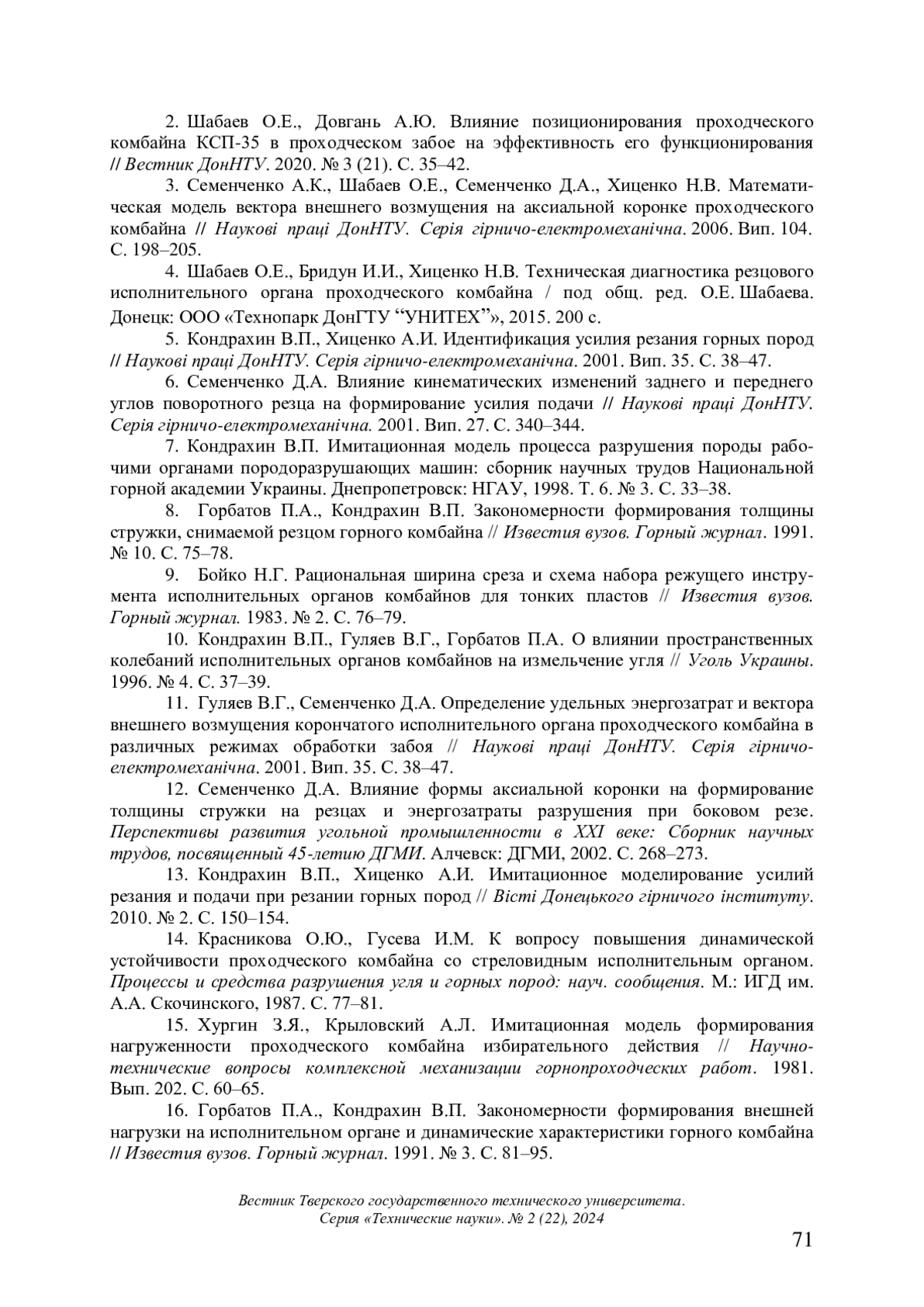 ШАБАЕВ О. Е., ДОВГАНЬ А. Ю. МАТЕМАТИЧЕСКАЯ МОДЕЛЬ ФОРМИРОВАНИЯ ВЕКТОРА ВНЕШНЕГО ВОЗМУЩЕНИЯ НА ОСЕВОЙ КОРОНКЕ ИСПОЛНИТЕЛЬНОГО ОРГАНА ПРОХОДЧЕСКОГО КОМБАЙНА // ВЕСТНИК ТВЕРСКОГО ГОСУДАРСТВЕННОГО ТЕХНИЧЕСКОГО УНИВЕРСИТЕТА. СЕРИЯ: ТЕХНИЧЕСКИЕ НАУКИ. 2024. № 2 (22)