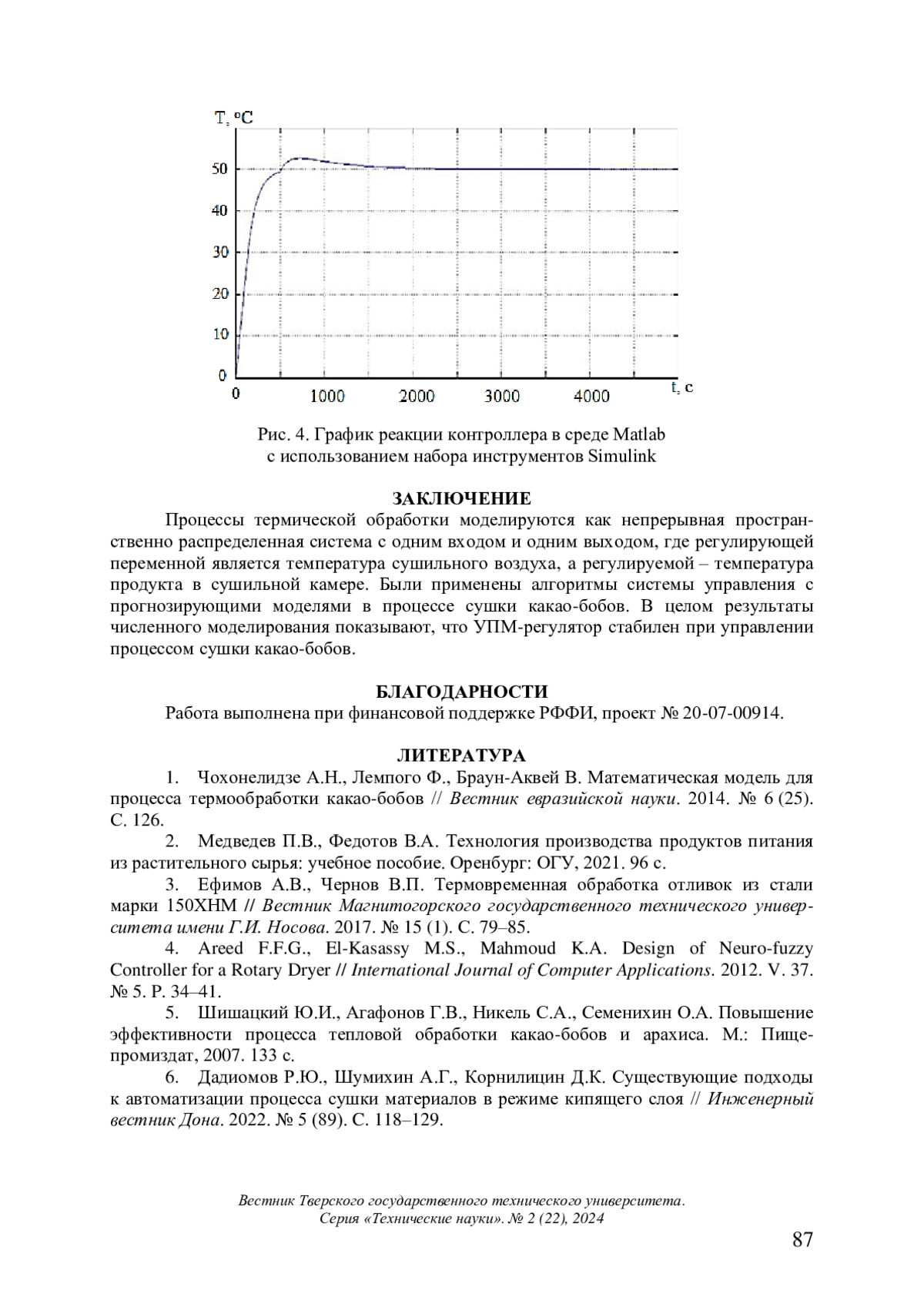6. 	Дадиомов Р.Ю., Шумихин А.Г., Корнилицин Д.К. Существующие подходы к автоматизации процесса сушки материалов в режиме кипящего слоя // Инженерный вестник Дона. 2022. № 5 (89). C. 118-129.  EDN: GQXMSD