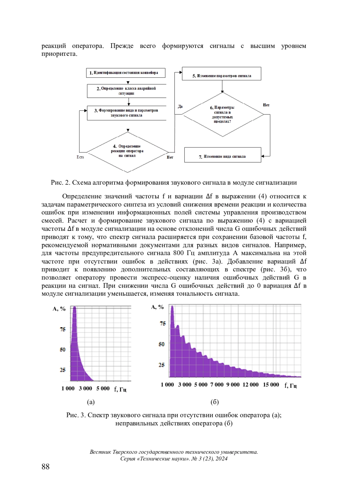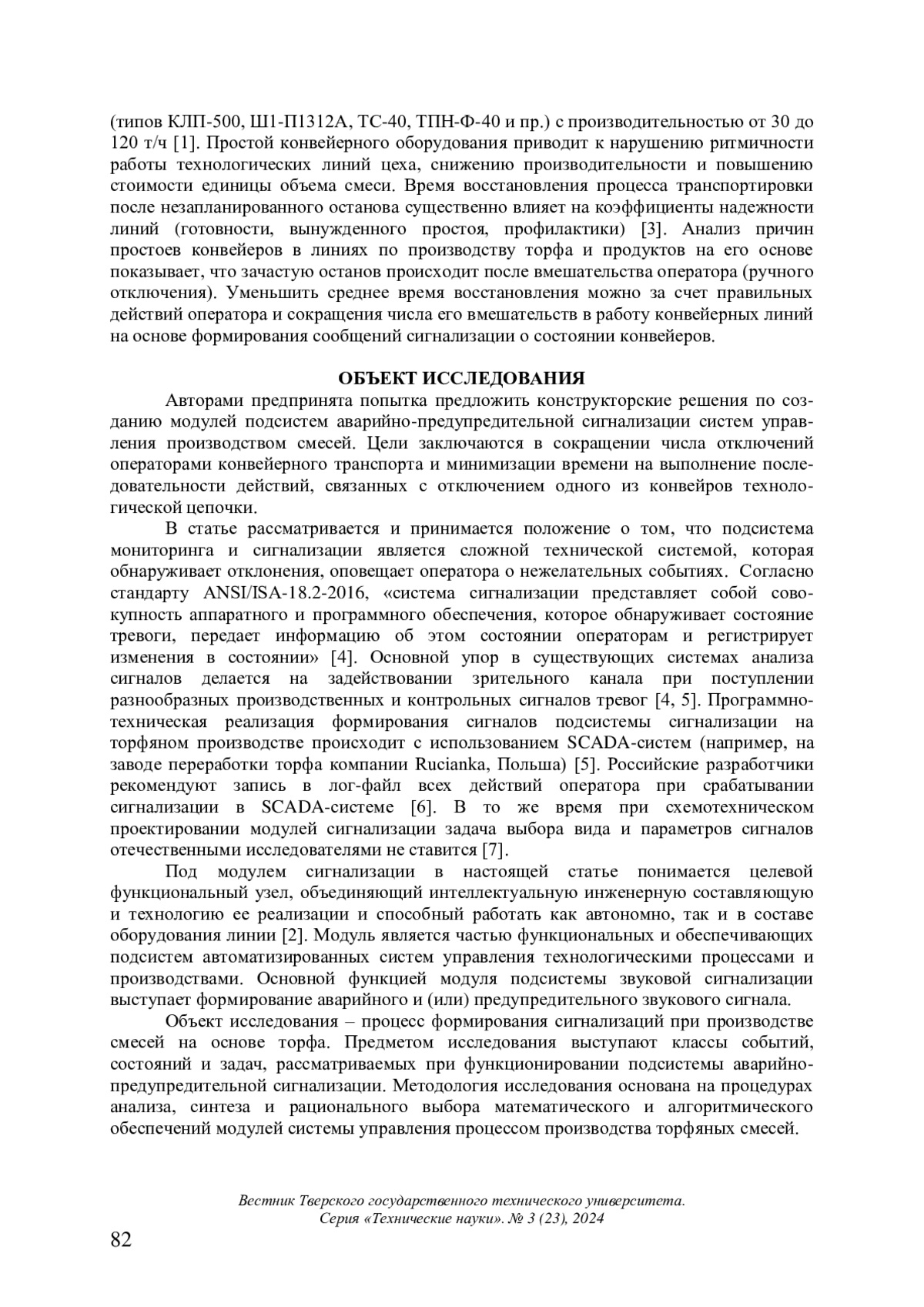 Представлены результаты, полученные в ходе разработки модулей звуковой сигнализации систем управления производством смесей на основе торфа. Выделены задачи, решаемые в ходе контроля, сигнализации и управления технологическими конвейерами. Приведен пример функциональной схемы автоматизации привода конвейера для подачи торфа, определены его состояния. Предложено математическое описание звуковых тональных сигналов для оператора с введением классов состояний, сигналов и реакций на сигнал. Отмечено, что алгоритм формирования сигнала включает выбор вида и параметров сигнала по продукционным правилам. Приоритет звукового сигнала рассмотрен как один из параметров. Подчеркнуто, что коррекция параметров происходит на основе оценки реакции оператора на сигнал; добавление к основной частоте звука вариации приводит к изменению спектра сигнала при оценке времени реакции и ошибок оператора