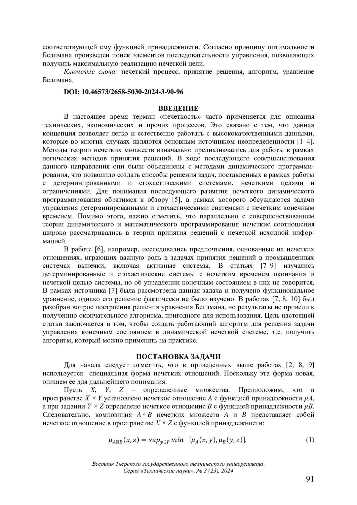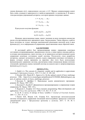 БОРОВИК В. В., ЕГЕРЕВА И. А., СМИРНОВА П. М. ПОСТРОЕНИЕ АЛГОРИТМА УПРАВЛЕНИЯ КОНЕЧНЫМ СОСТОЯНИЕМ НЕЧЕТКОЙ ДИНАМИЧЕСКОЙ СИСТЕМЫ // ВЕСТНИК ТВЕРСКОГО ГОСУДАРСТВЕННОГО ТЕХНИЧЕСКОГО УНИВЕРСИТЕТА. СЕРИЯ: ТЕХНИЧЕСКИЕ НАУКИ. 2024. № 3 (23)