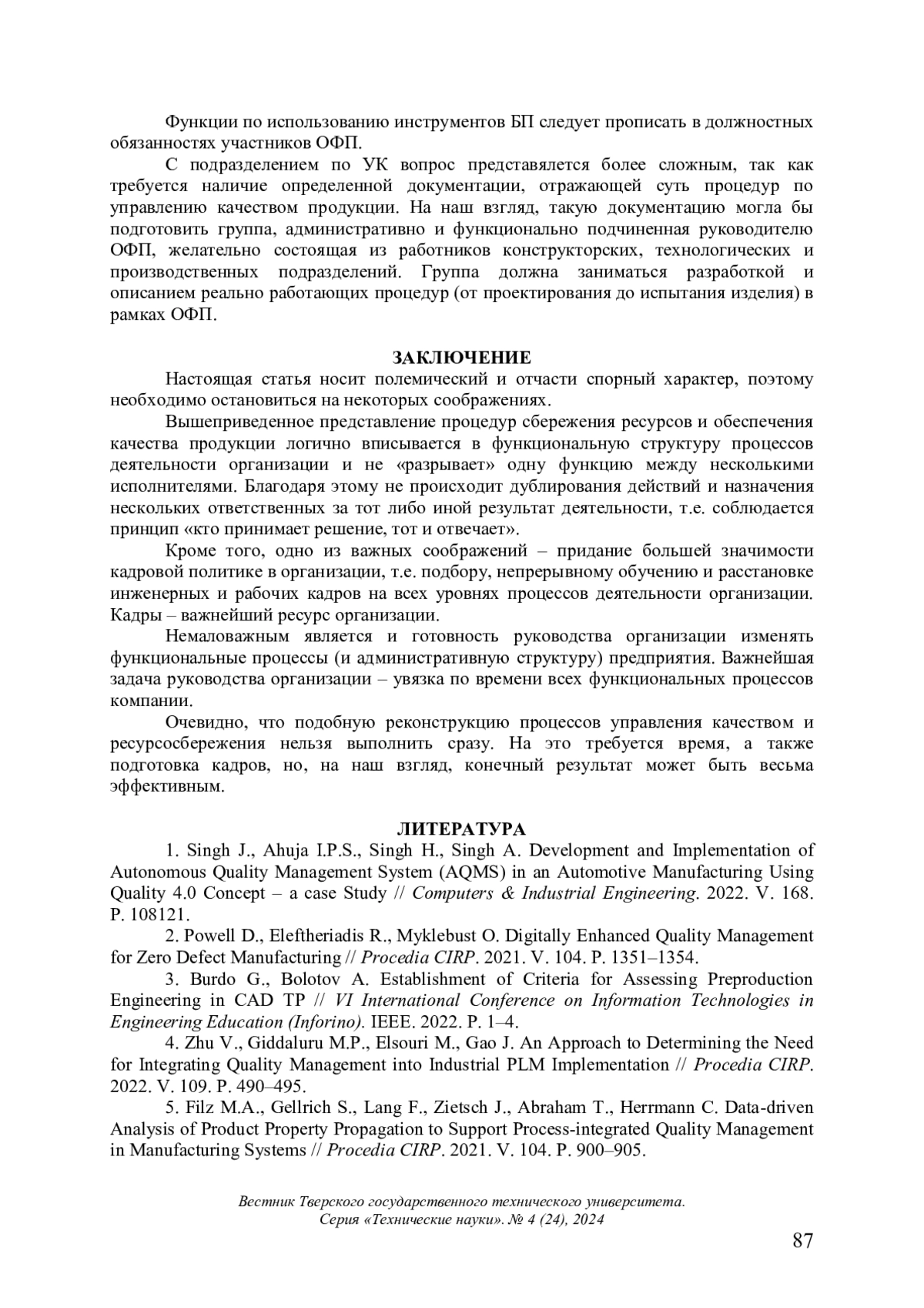 4. 	Zhu V., Giddaluru M.P., Elsouri M., Gao J. An Approach to Determining the Need for Integrating Quality Management into Industrial PLM Implementation // Procedia CIRP. 2022. V. 109. P. 490-495.  EDN: ENPSHE