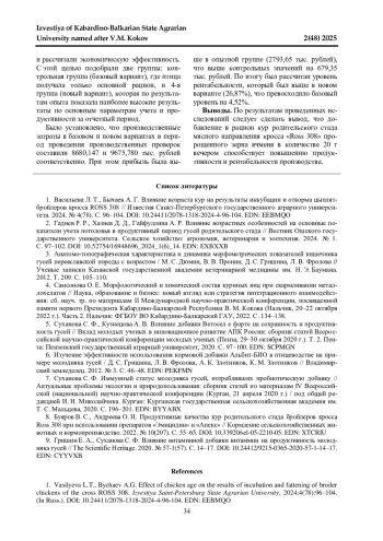 Статья: НОРМЫ СКАРМЛИВАНИЯ ЗЕРЕН ПРОРОЩЕННОГО ЯЧМЕНЯ КУРАМ РОДИТЕЛЬСКОГО СТАДА МЯСНОГО НАПРАВЛЕНИЯ (2025)