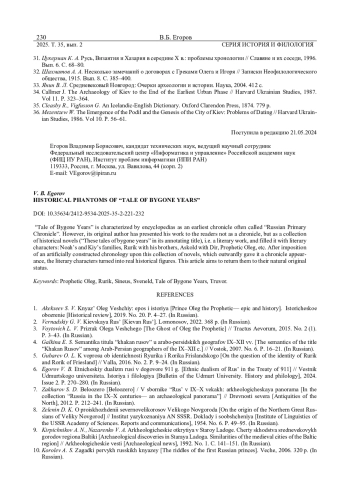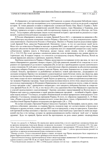 ЕГОРОВ В. Б. ИСТОРИЧЕСКИЕ ФАНТОМЫ ПОВЕСТИ ВРЕМЕННЫХ ЛЕТ // ВЕСТНИК УДМУРТСКОГО УНИВЕРСИТЕТА. СЕРИЯ: ИСТОРИЯ И ФИЛОЛОГИЯ. 2025. Т. 35 № 2