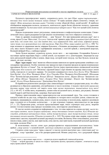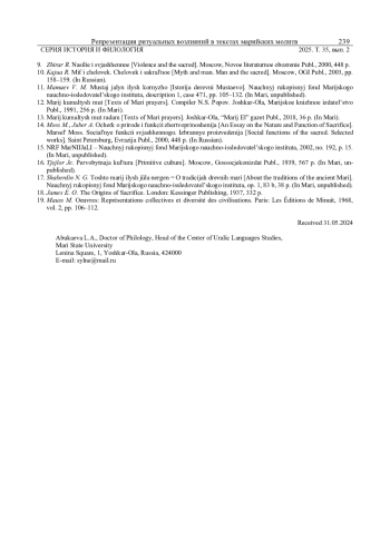 3. Абукаева Л. А. Пищевой культурный код в текстах марийских молитв // Ежегодник финно-угорских исследований. 2024. № 1. С. 6-14. EDN: ATIKCL