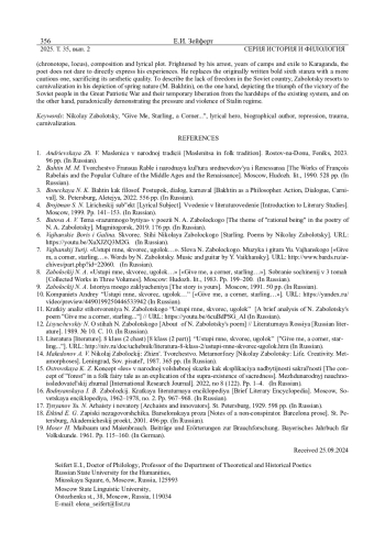 5. Бутова А. В. Тема “разумного бытия” в поэзии Н. А. Заболоцкого: дис. … канд. филол. н. Магнитогорск, 2019. 176 с. EDN: UAEEAS