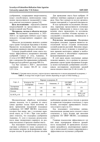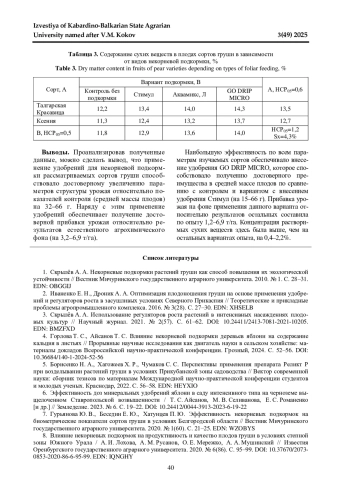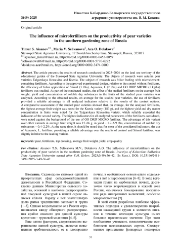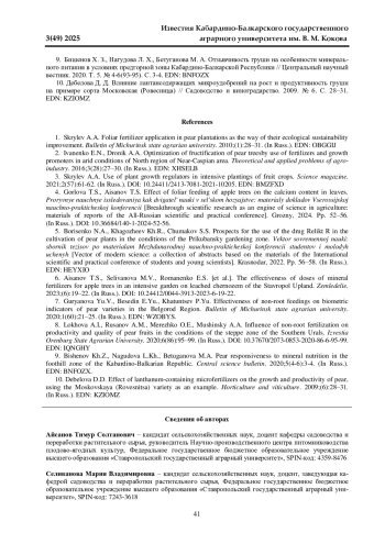 Статья: ВЛИЯНИЕ МИКРОУДОБРЕНИЙ НА ПРОДУКТИВНОСТЬ СОРТОВ ГРУШИ В ЮЖНОЙ ЗОНЕ РОССИИ (2025)