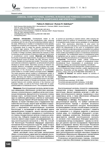 Введение. Конституционный контроль является краеугольным камнем в вопросе поддержания конституционного строя, обеспечения соблюдения принципа верховенства закона и защиты прав личности в государстве. Различия в моделях конституционного контроля в глобальном масштабе подчеркивают его сложность и уникальность. Данный фактор обуславливает необходимость сравнительного исследования для понимания конкретных механизмов, используемых в различных правовых системах. В статье рассматриваются модели, значение и особенности конституционного контроля в России и ряде зарубежных стран, определяются нюансы их функционирования, а также вопросы взаимодействия элементов моделей конституционного контроля.