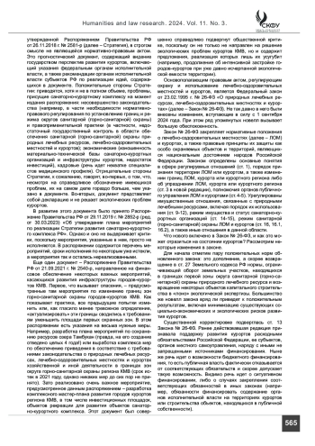 Введение. В статье рассматриваются проблемы формирования курортного законодательства, включая новеллы, введенные в ФЗ от 23.02.1995 г. № 26-ФЗ (ред. от 04.08.2023) «О природных лечебных ресурсах, лечебно-оздоровительных местностях и курортах», вступающие в силу с 1 сентября 2024 г.