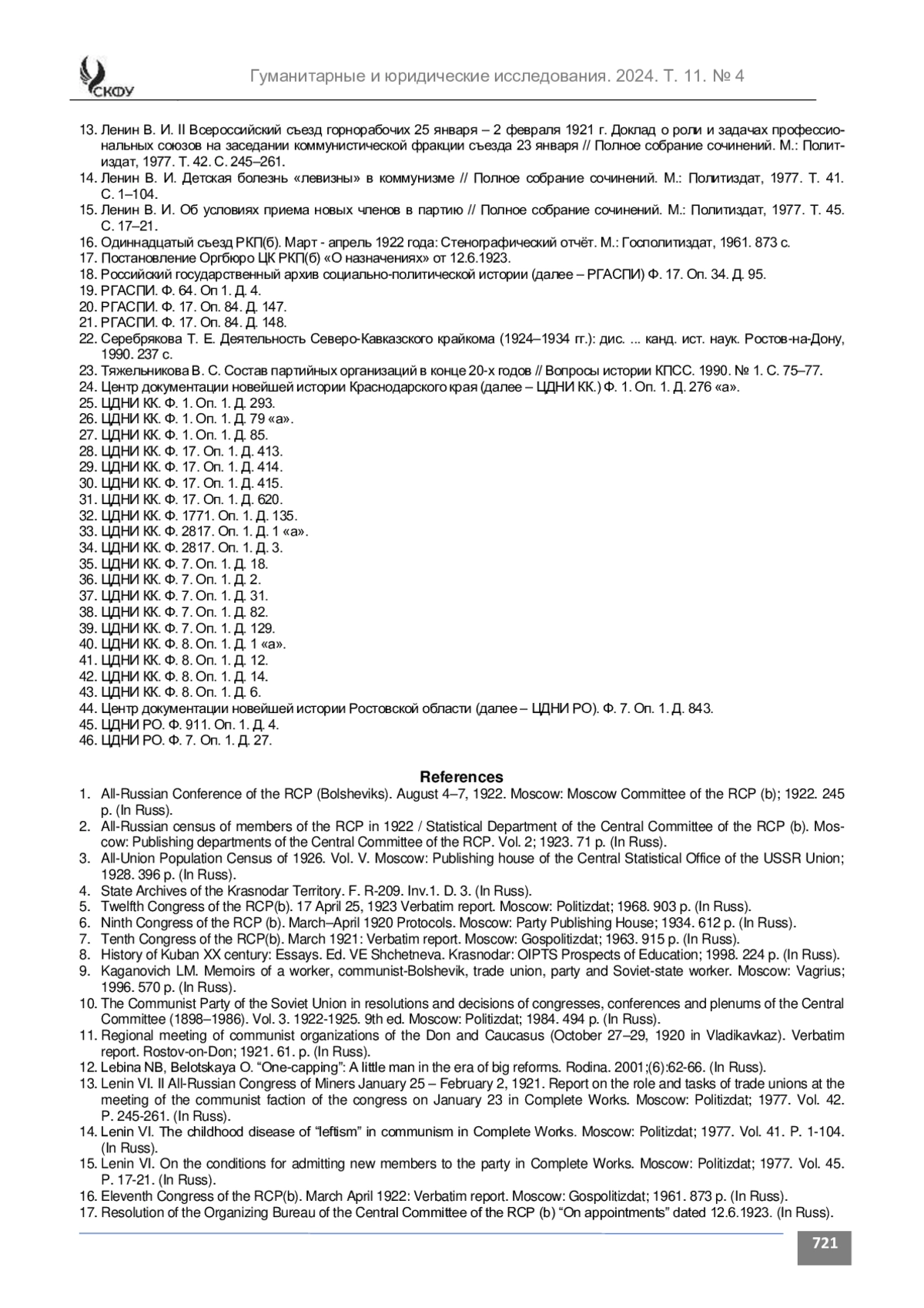 23. Тяжельникова В. С. Состав партийных организаций в конце 20-х годов // Вопросы истории КПСС. 1990. № 1. С. 75-77.