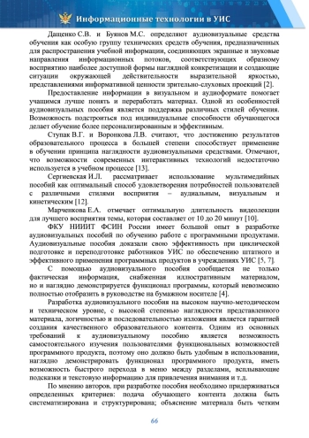 2. Дащенко С.В., Буянов М.С. Влияние аудиовизуальных средств обучения на восприятие учебного материала // Молодежь. Образование. Наука. 2024. № 1 (19). С. 54-59. EDN: MCPXHE