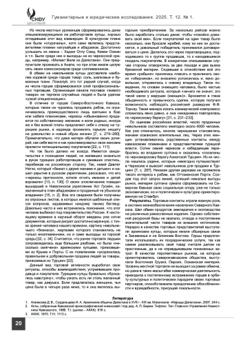 19. Дибирова А. И. Предметы торговли в торгово-экономических связях Дагестана и Грузии в XVIII - начале XIX века // Известия вузов. Северо-Кавказский регион. Общественные науки. 2007. № 1. С. 28-29.